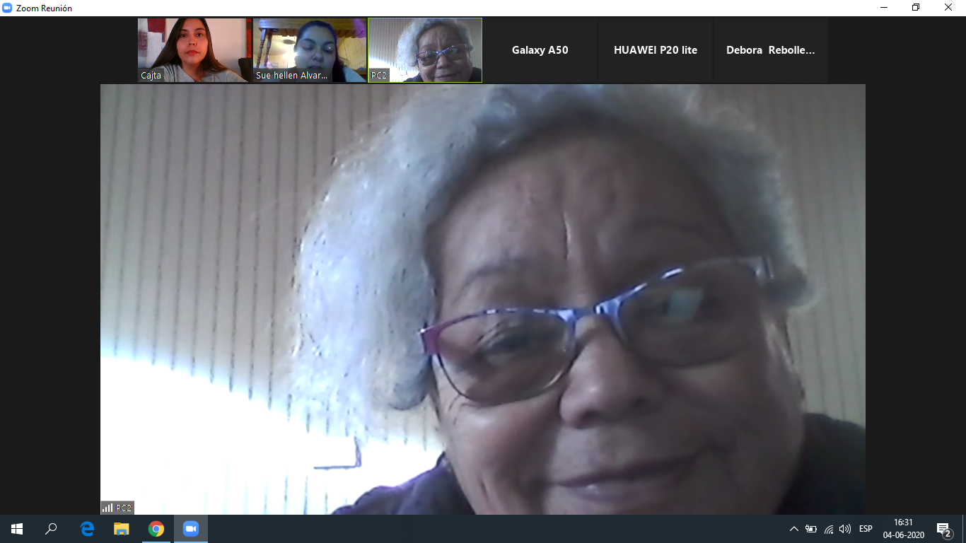 En la videoconferencia estuvieron presentes: Leonor Araya Hidalgo, presidenta casa de encuentro voluntariado del adulto mayor y representante regional del adulto mayor, Carolina Saavedra Zamora, encargada regional del Programa Vínculos, Ministerio de Desarrollo Social, Yimiko Sato Villazon, monitora comunitaria vínculos 14, Paulina Cordova, monitora comunitaria vínculos 14, Débora Rebolledo, especialista en grupos vulnerables del Ministerio de Desarrollo Social EGV, Constanza Campusano Hidalgo, gestora regional del Programa Vínculos, Rosaura Maya Castillo, enfermera encargada del programa de Adulto mayor del hospital Marcos Macuada y Sue Hellen Alvarez Díaz, Monitora Comunitaria vínculos 13.