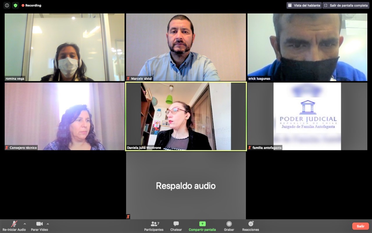 El Abogado Auxiliar del Consultorio JurÃdico Centro, Marcelo Alvial, dando continuidad al servicio de la CAJTA en el marco de la pandemia del Covid-19, comparece por videoconferencia como Abogado Ad-Litem a las distintas Audiencias Preparatorias de Medidas de Protección ante el del Tribunal de Familia de Antofagasta.