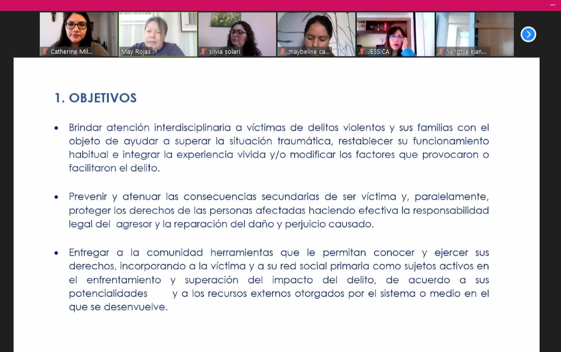 Asimismo, la Abogada expuso de manera didáctica la intervención jurÃdica que se realiza con vÃctimas en el proceso penal, revisando paso a paso las acciones que se desarrollan.