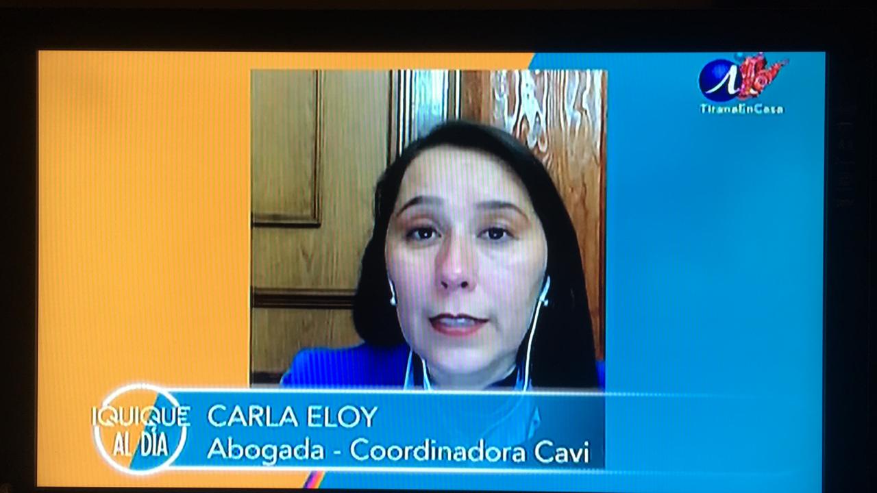 La Abogada Coordinadora del Centro de Atención a VÃctimas de Delitos Violentos, CAVI, de Tarapacá, Carla Eloy González, fue entrevistada en Iquique TV por videoconferencia vÃa la plataforma Skype por el periodista, Karim Buhadla.