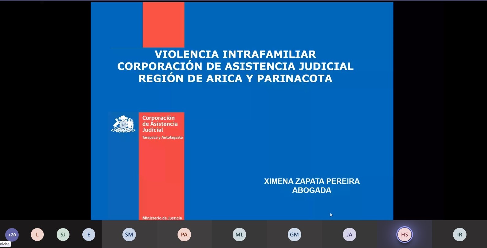 La jornada se realizó, a través de videoconferencia y estuvo a cargo de las abogadas auxiliares del Área Familia del Consultorio Jurídico Arica, Ximena Zapata Pereira y María Paz Negrón Ancavil.
