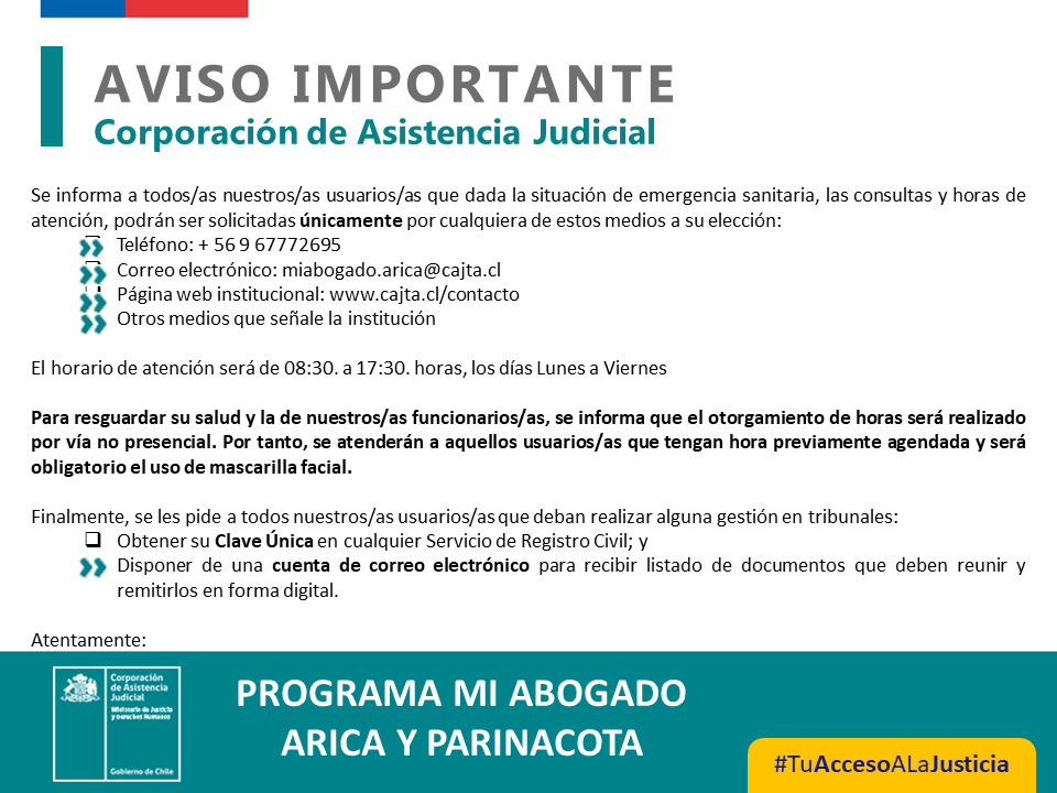 - Sebastián Nilo M., Coordinador del programa Mi Abogado Región de Arica y Parinacota.