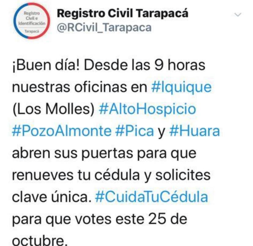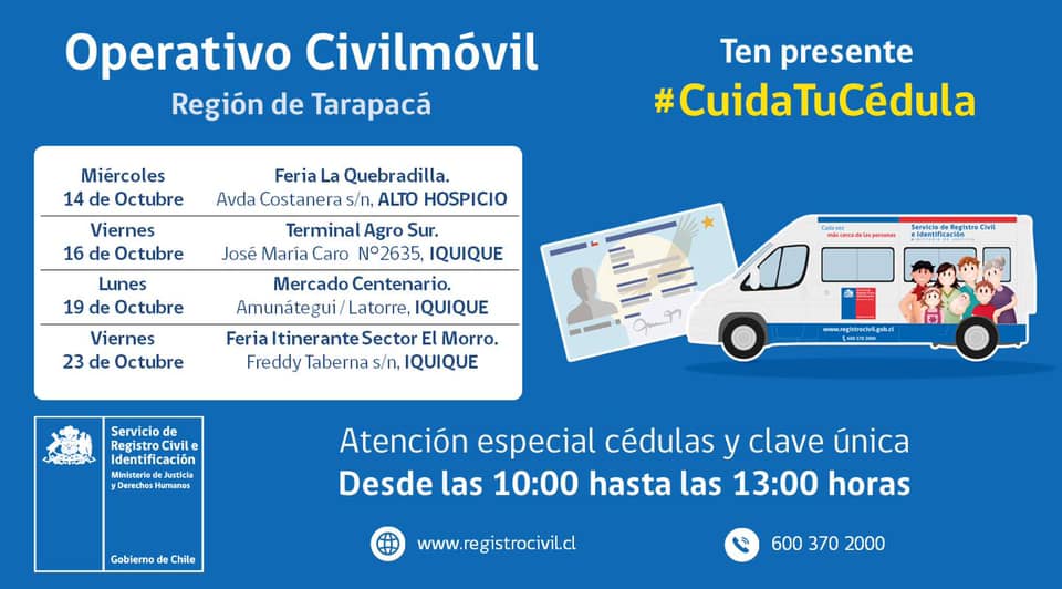 Hoy en Tarapacá oficinas del Registro Civil abiertas.
