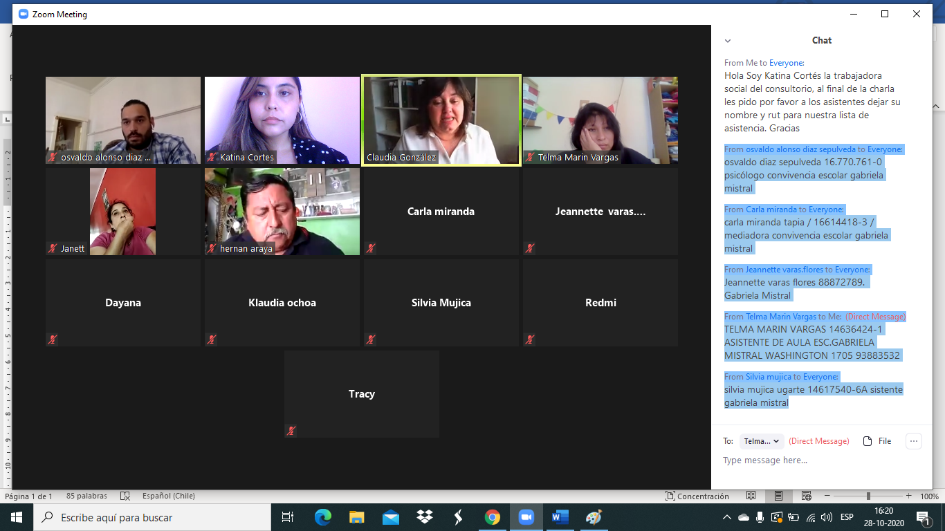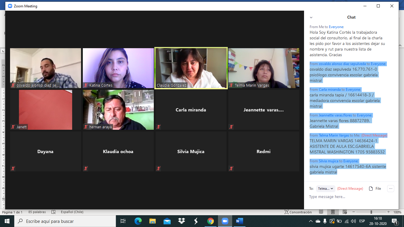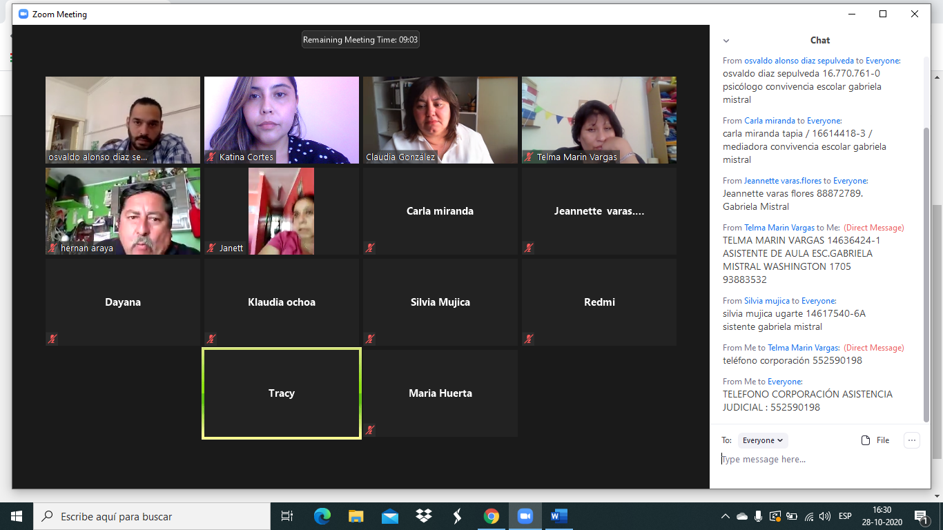 La jornada, estuvo a cargo de la Abogada Jefe de la unidad, Claudia González Gjordan en compañÃa de la trabajadora social Katina Cortés, encargada de la logÃstica y coordinación de la actividad que se desarrolló a través del sistema de videoconferencia por la plataforma Zoom.