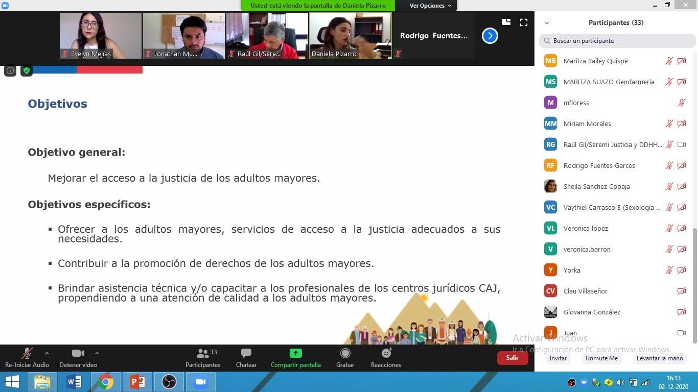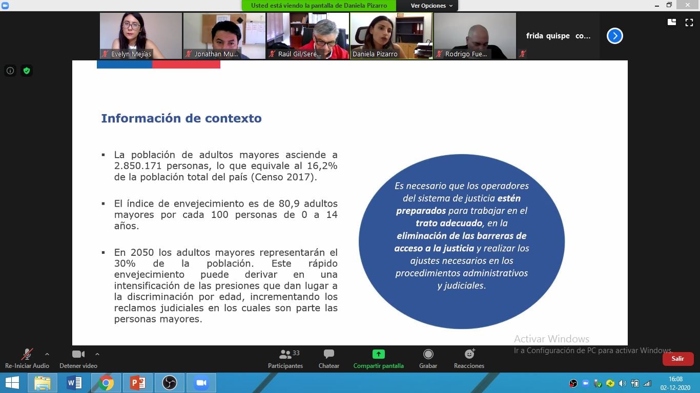 Por su parte la abogada Daniela Pizarro Milanesi, expuso acerca de la nueva lÃnea especializada de la corporación de asistencia judicial que busca promover los derechos de las personas mayores a través de la asistencia socio jurÃdica en casos de violencia, maltrato, abuso patrimonial y discriminación, socializando con las instituciones el objetivo de la unidad de defensa jurÃdica integral al adulto mayor.
