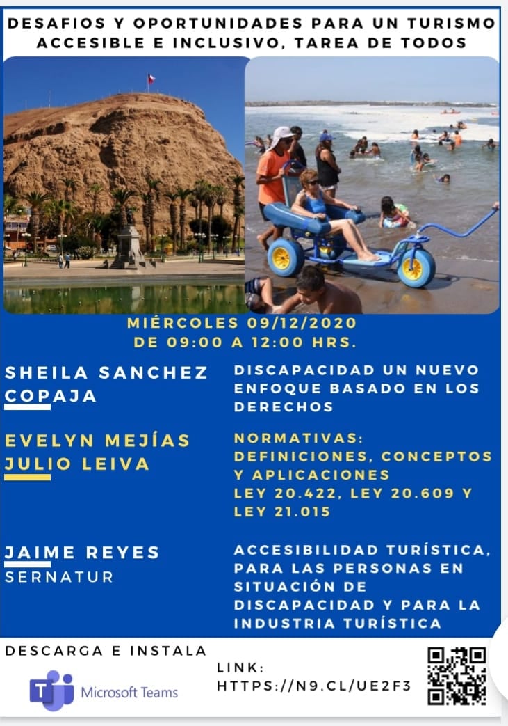 El convenio Cajta- Senadis de la Región de Arica y Parinacota a través de su abogada ejecutora Evelyn Mejías Araya participó como expositor en la Tercera Jornada organizada por los integrantes de la Comisión de Accesibilidad de la Mesa Regional de la Discapacidad. En esta oportunidad la capacitación se trató sobre “Accesibilidad Turística para las Personas con Discapacidad” dirigida a funcionarios públicos relacionados en la materia y para la Industria Turística en general.