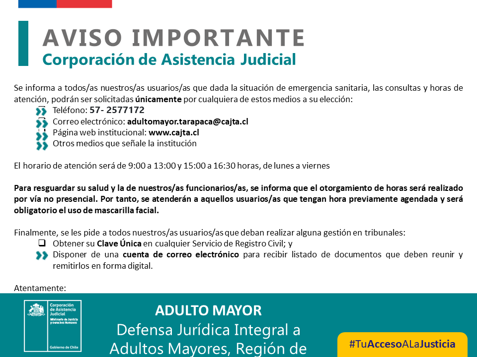 La abogada de la Unidad de Defensa JurÃdica Integral de los Adultos Mayores de Tarapacá, Sandra MartÃnez fue entrevistada telefónicamente en radio Súper 91.9 de Iquique. La profesional explicó las funciones y caracterÃsticas de la nueva unidad de la CAJTA, destinada especÃficamente para las personas mayores de la Región.