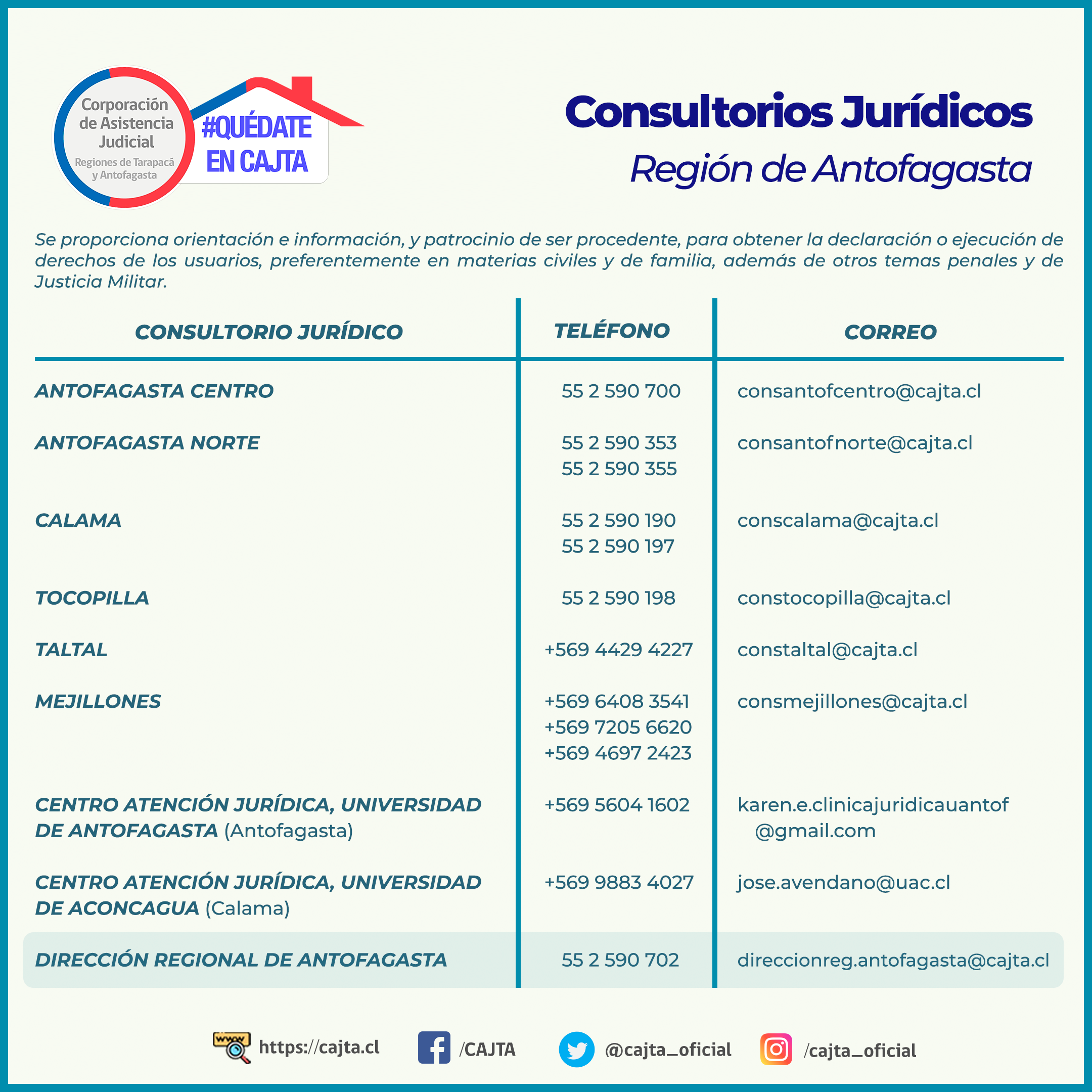 Para sus consultas se publica afiche con datos de los consultorios jurídicos de la Región de Antofagasta.