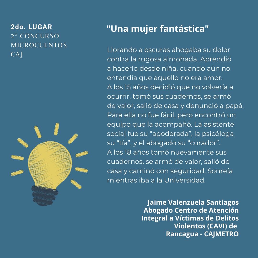 Segundo lugar: “Una mujer fantástica” de Jaime Valenzuela Santiagos, Abogado del Centro de Atención Integral a Víctimas de Delitos Violentos de Rancagua de CAJMETRO.